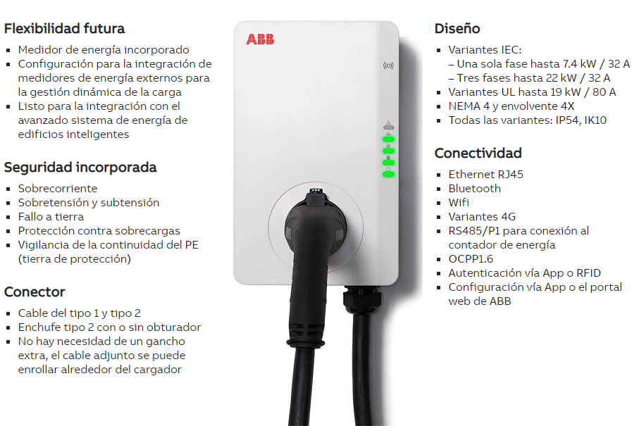 Cargador coche eléctrico Wallbox ABB Terra AC de 7,4kW + Cable de Carga de 5M.